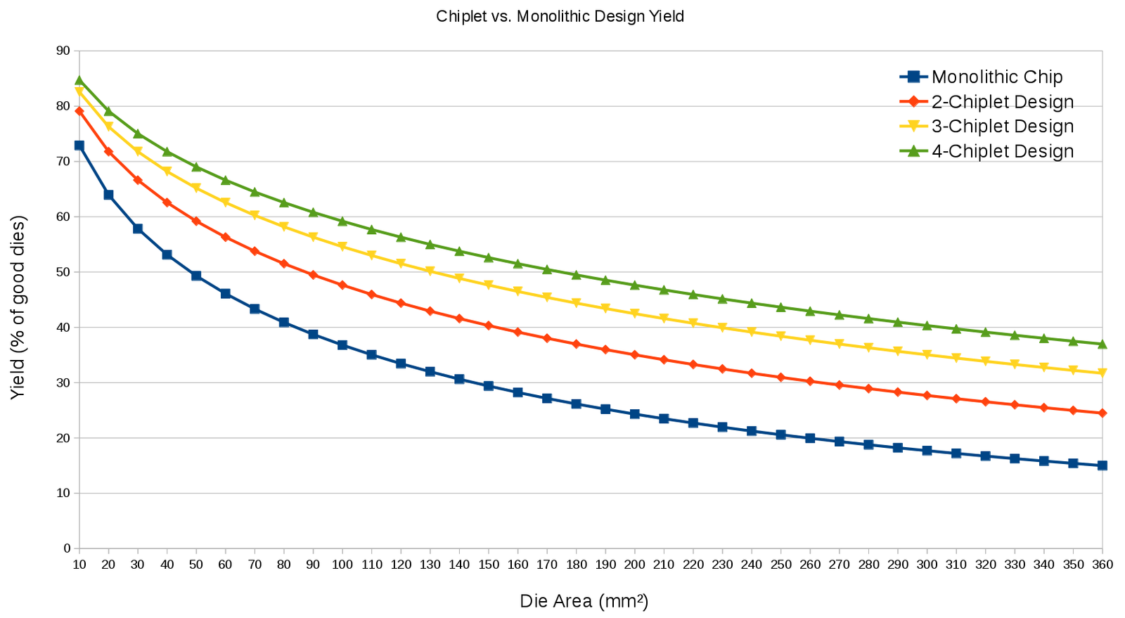 칩렛의 비용 효과 - Chip Size 증가에 따른 수율 저하 극복