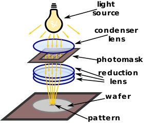 칩렛은 여러 칩이 결합된 형태이기 때문에 Reticle Size 제약으로 인한 단일 칩의 성능 증가 한계를 극복할 수 있습니다. 단일(Monolithic) 칩이란 전체 Processor가 하나의 Chip으로 구성된 것으로써 과거 AMD CPU가 이러한 방식으로 만들어졌으며 현재 엔비디아의 A100 GPU도 단일 칩으로 만들어집니다. 최근 Reticle 크기의 제약 때문에 단일 칩의 성능 한계가 나타나고 있습니다. Reticle이란 반도체 생산시 사용되는 Photo Mask입니다. 반도체 생산 과정은 웨이퍼 위에 산화막을 형성(산화 공정)한 뒤 그 위에 전자회로를 그려 넣고(포토 과정) 이에 맞추어 식각 및 배선 생성 과정을 거칩니다 (더 자세한 반도체 생산 공정을 알고 싶으신 분은 삼성전자 반도체 이야기를 참고하세요). Reticle(Photo Mask)는 아래 그림과 같이 포토 과정에서 전자회로를 그리는데 활용되는 일종의 그림판이라고 보시면 됩니다.